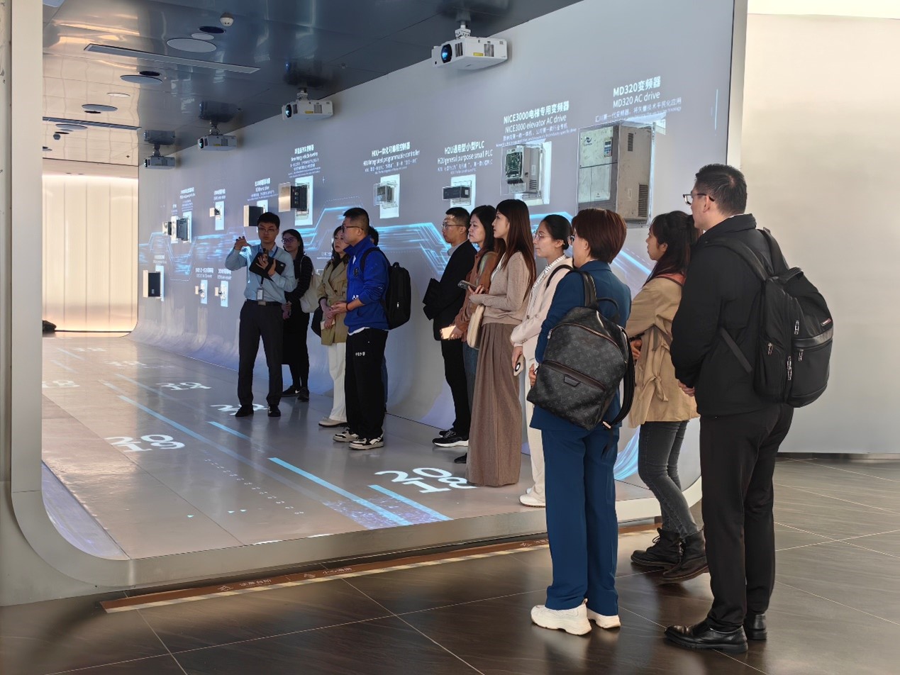 上海交大安泰经管学院教师团队首先参观了汇川技术工控博物馆,深入探索并领略了汇川技术在工业自动化、智能制造及新能源汽车等多个前沿领域的卓越创新成就,尤其是在智慧电梯、伺服系统和PLC等核心部件的技术创新,给参观教师们留下了深刻印象。