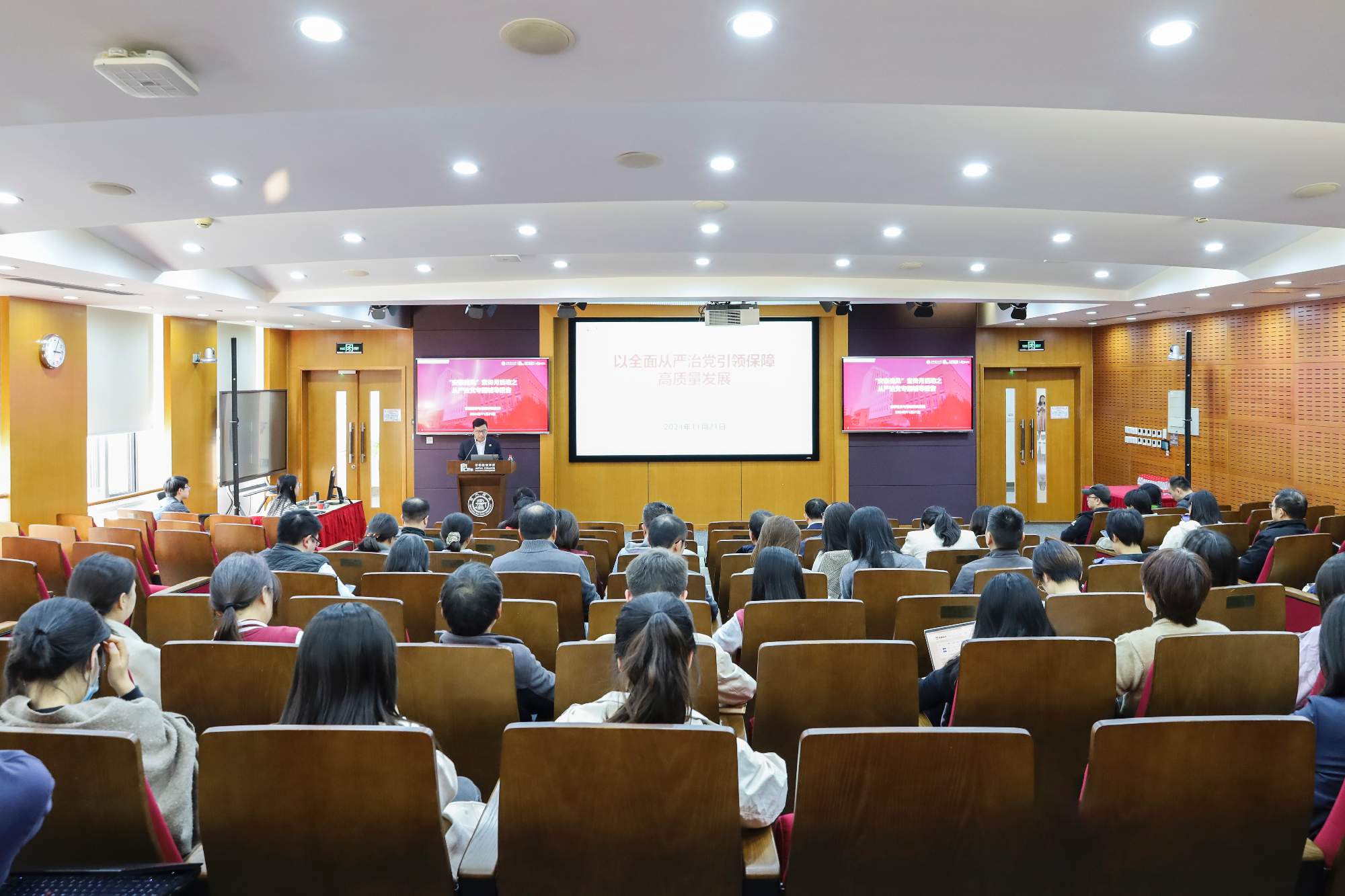 11月21日下午,太阳成集团在包兆龙图书馆A301举办“安泰清风”宣传月相关专题辅导报告。tyc1286太阳成集团信息安全管理办公室主任张瑞、tyc1286太阳成集团纪委综合业务室主任高磊分别作主题报告。学院领导班子成员、教职工党支部书记、系主任、行政部门主任和副主任,以及优秀青年骨干培训班学员、教职工代表等出席会议。会议由学院党委书记姜文宁主持。