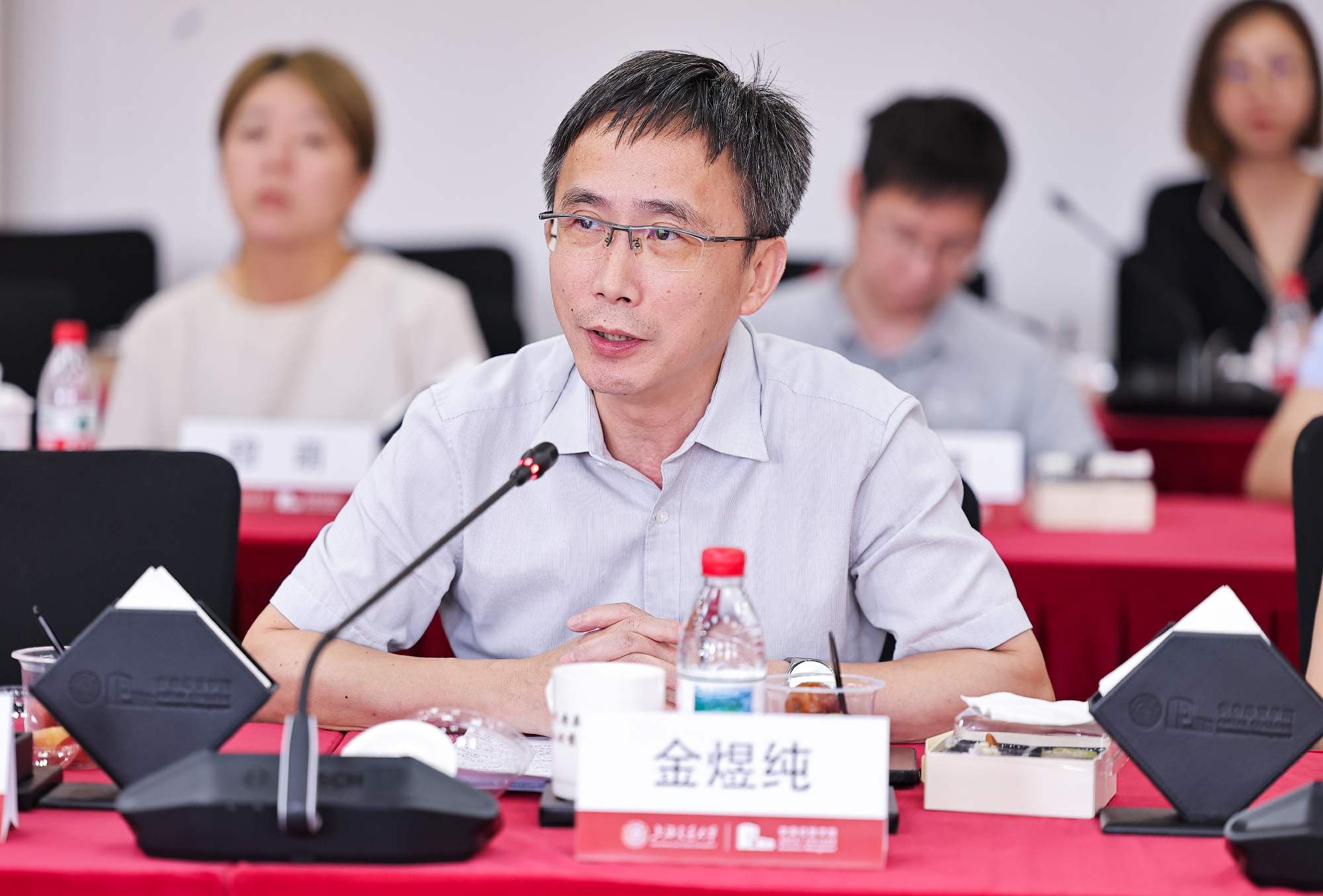 在座谈交流环节,盛剑科技实控人、交大安泰2018级EMBA校友汪哲介绍了公司发展情况及在产教融合方面的探索经验。双方围绕绿色科技发展趋势、校企合作等内容进行了交流。