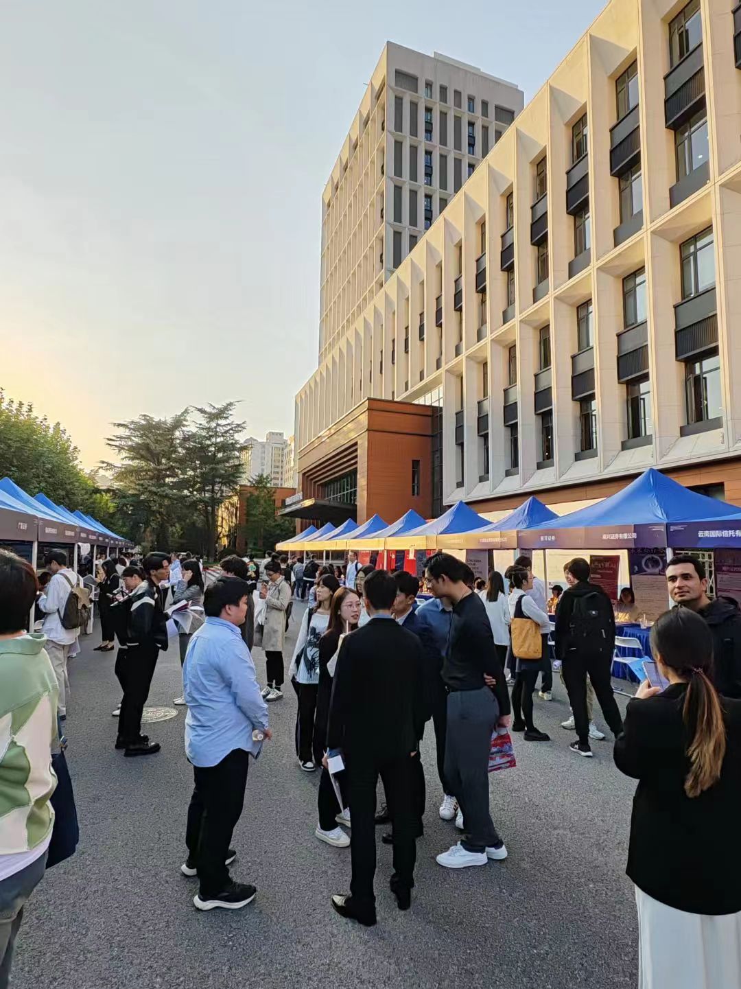 本次经管专场招聘会分为两场,由安泰学生工作与职业发展办公室、国际合作与交流办公室共同承办,首次以在户外设立摊位的形式开展,为同学们打造了一个与用人单位高效沟通的开放空间。招聘会定向邀请了近百家重要用人单位。参会单位包括中信证券、华为、欧莱雅、德意志银行、汇丰银行、普华永道、阿科玛、恩德斯豪斯、米其林等等,涵盖金融、科技、美妆、食品农业、工业等领域的头部用人单位,丰富了同学们的就业选择。